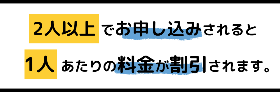 | 申し込み人数 | 一人あたり の割引額(税別) |