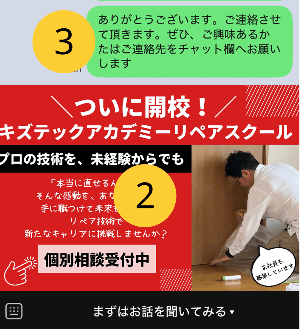 - トーク画面を開き、「個別相談受付中」のバナーをタップしてください。